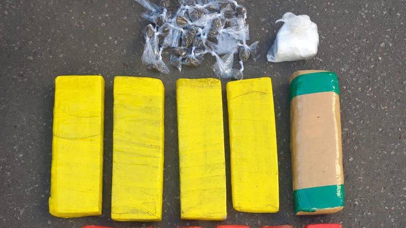 Os traficantes correram, conseguiram escapar, mas dispensaram 11 tabletes de maconha, 46 trouxas da mesma erva e uma pedra grande de cocaína.