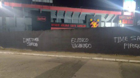 Frases como “time pipoqueiro”, “elenco vagabundo”, diretoria safada”, foram escritas em torno do estádio do clube pernambucano.