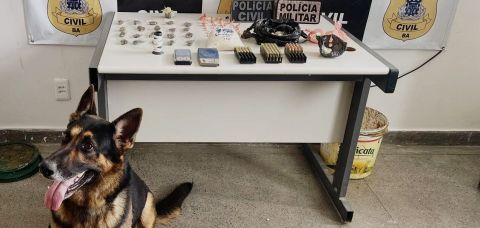 A ação foi realizada em conjunto com policiais militares e contou com os animais do Grupamento de Operações com Cães, da PM. O material estava enterrado em baldes, dentro de um terreno baldio, no bairro Irmã Dulce. Em um imóvel próximo ao local ainda foi encontrada uma bicicleta. O resultado da apreensão será enviado ao Departamento de Polícia Técnica (DPT), para passar por perícia.