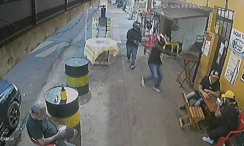 Câmeras de segurança flagraram o momento exato que pai e filho foram executados em uma mesa de bar, no município de Campo Grande, no Mato Grosso do Sul. O caso aconteceu na noite de quarta-feira, 25.