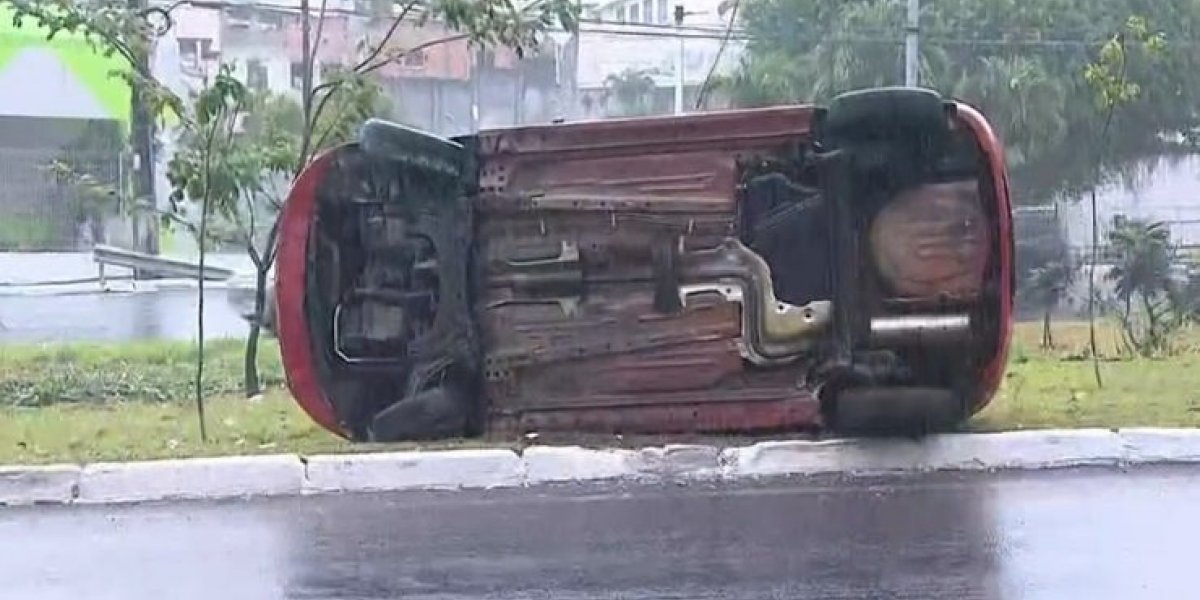 Um carro capotou e foi parar no canteiro central da Avenida Reitor Miguel Calmon, em Salvador, na manhã desta terça-feira (7).