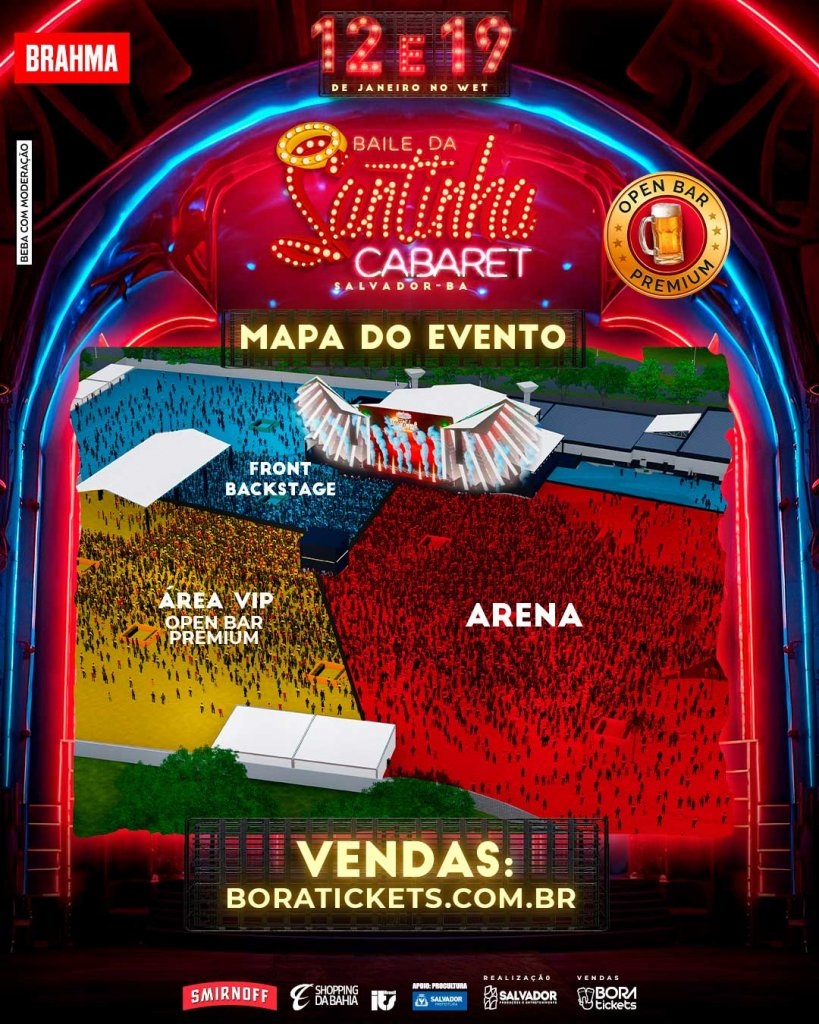 Os ingressos para o Baile da Santinha começaram a ser vendidos nesta segunda-feira (20), na loja física do Bora Tickets e no site oficial, e os valores vão de R$60 a R$560 no setor mais caro.