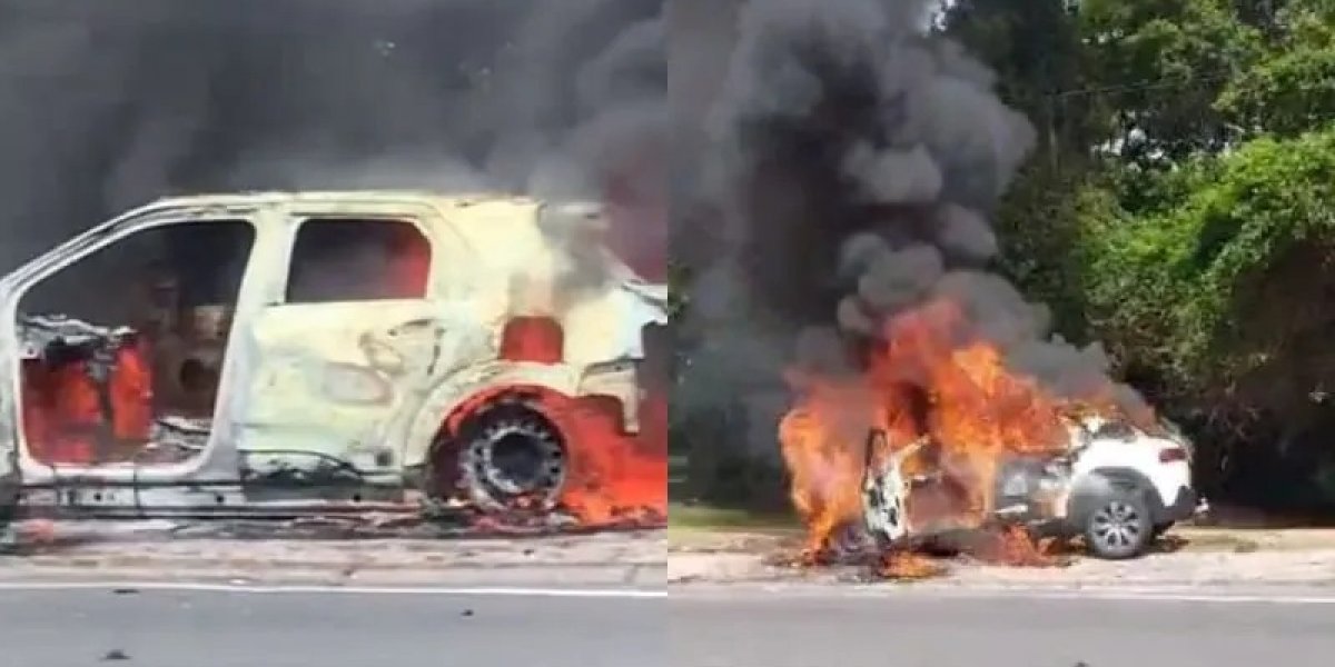 Carro fica destruído após pegar fogo na Avenida Paralela