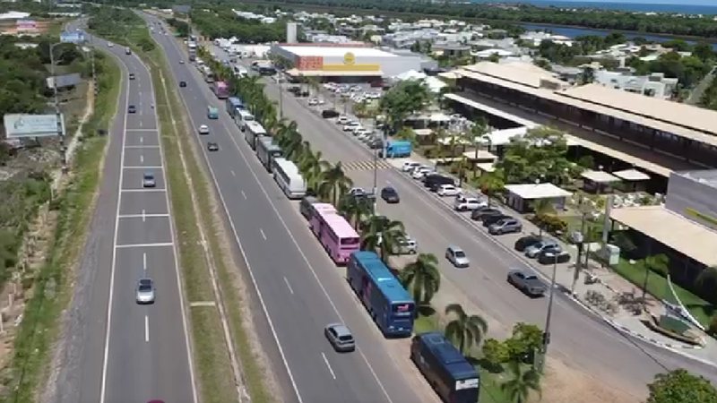 Uma longa fila de ônibus de turismo se formou no último final de semana na BA-099, mais conhecida como Estrada do Coco, na região do Litoral Norte baiano. Os veículos transportavam pessoas rumo à praia de Guarajuba, que pertence a Monte Gordo, distrito de Camaçari.
