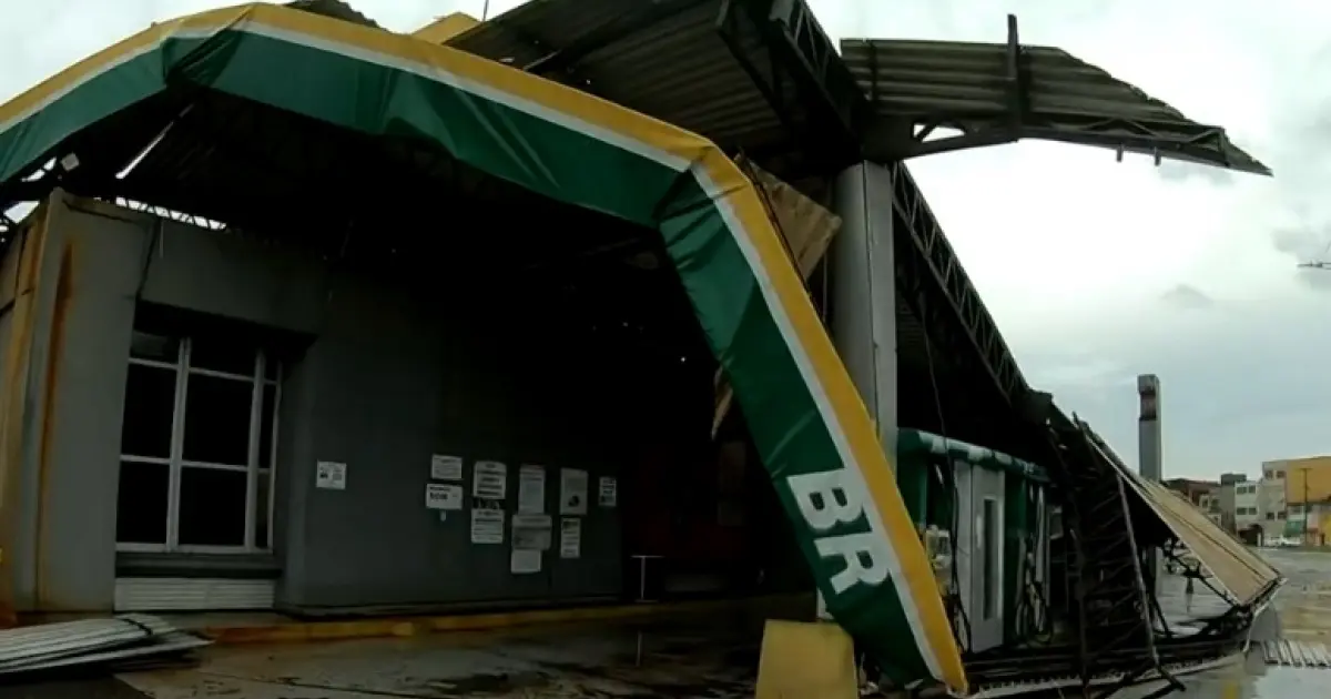 Teto de posto de combustíveis na Boca do Rio desaba com chuva e ventos fortes