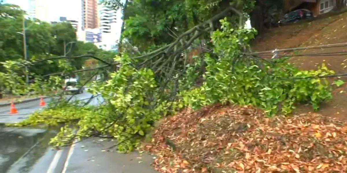 No início da manhã, motoristas e pedestres que passavam pela Avenida Centenário perceberam que parte de uma árvore caiu na madrugada desta quinta-feira (14). Os galhos estão em um das faixas da avenida, sentido Barra.