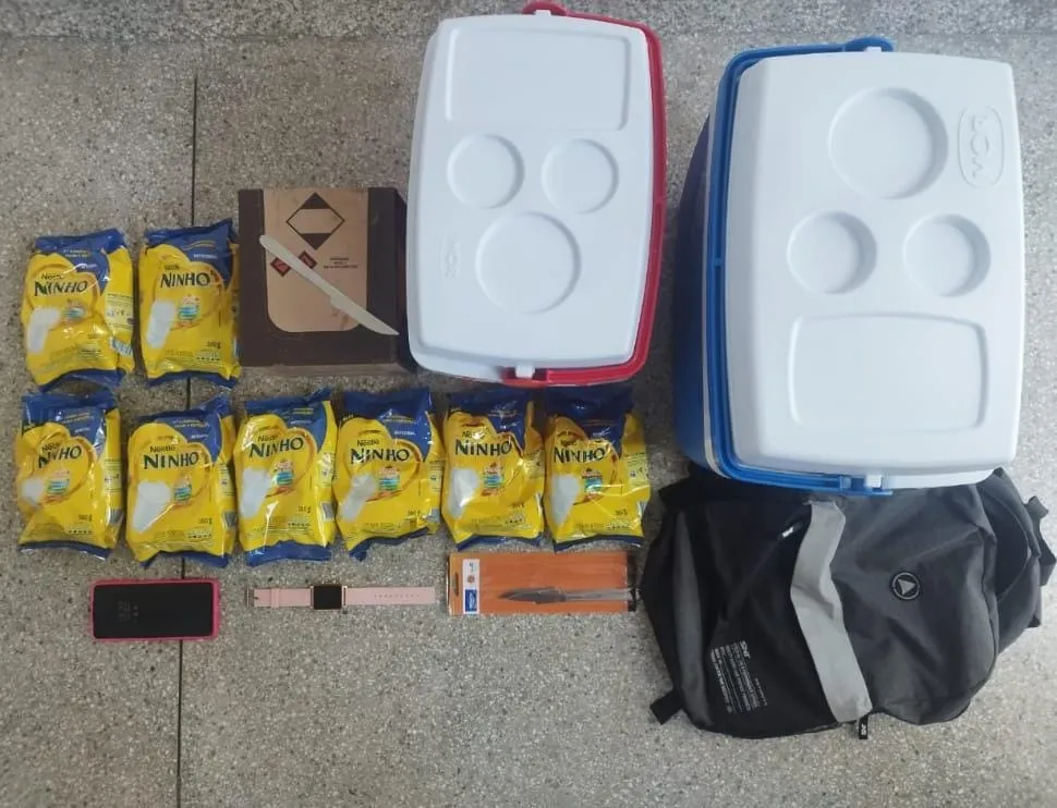 Ao chegarem os PMs constataram o fato, sendo feita a abordagem. Com os suspeitos, foram encontrados oito pacotes de leite, dois coolers e uma caixa de desodorante.