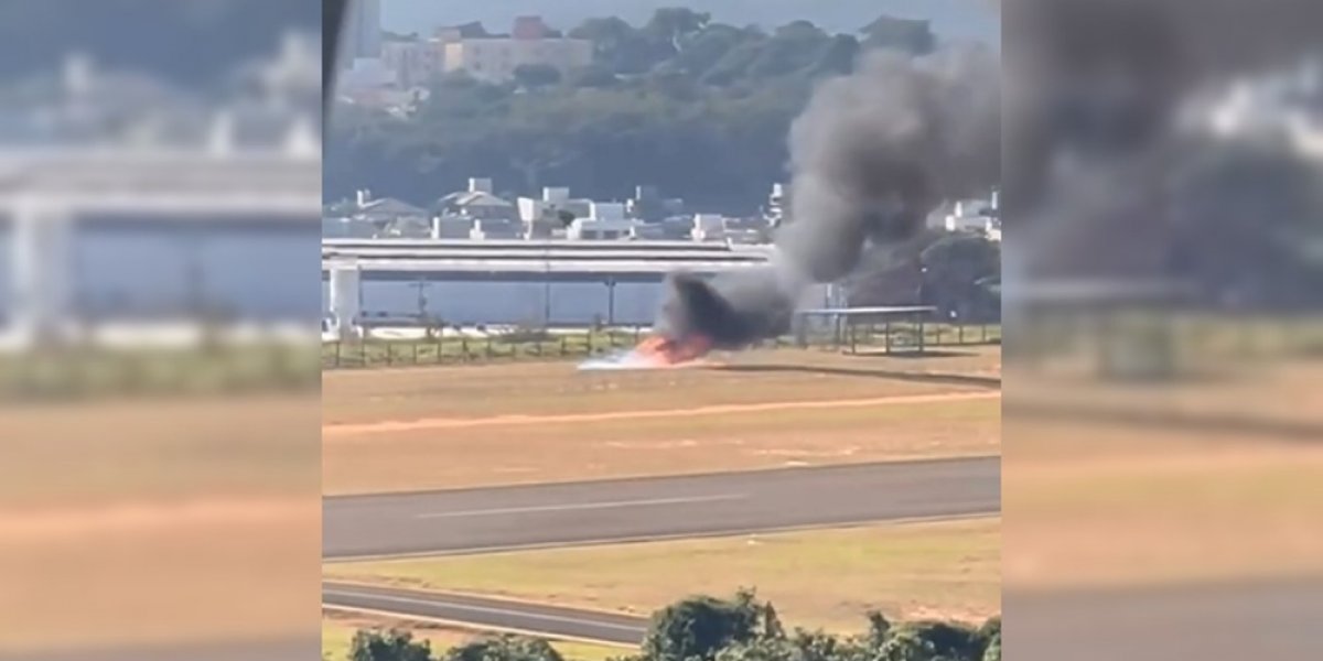 De acordo com informações inciiais, a aeronave pegou fogo após a queda e o Corpo de Bombeiros foi acionado.