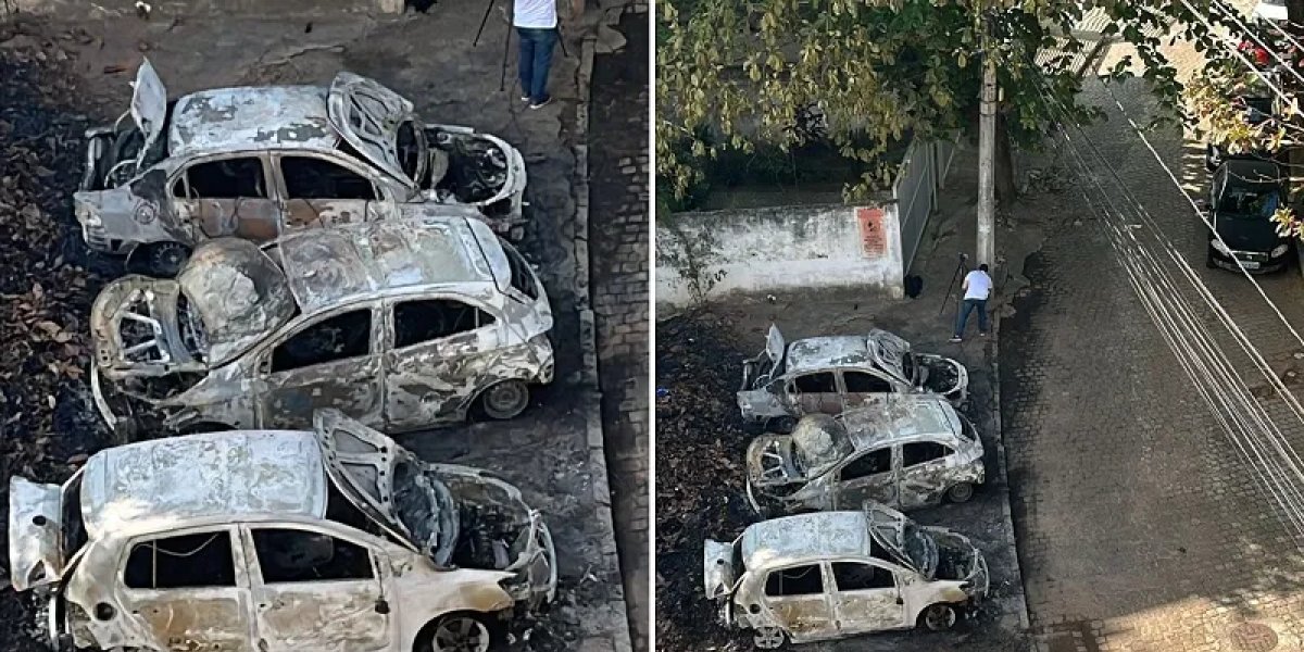 Segundo testemunhas, o fogo teve início em um dos carros estacionados e se espalhou para os outros, assustando os moradores.