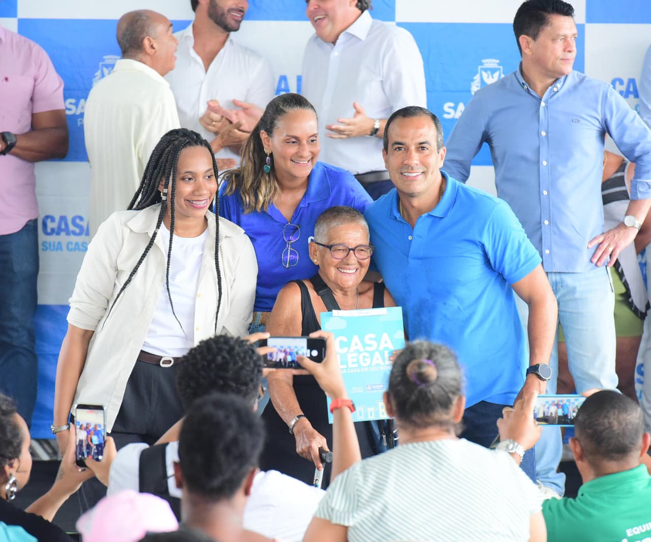 A Prefeitura de Salvador entregou nesta quinta-feira (29) mais 4.978 títulos de propriedade, pelo programa de regularização fundiária Casa Legal, na localidade do Bate Coração, em Paripe. Participaram da solenidade o prefeito Bruno Reis, o secretário municipal de Infraestrutura, Luiz Carlos de Souza, e o desembargador Roberto Maynard Frank, do Tribunal de Justiça da Bahia (TJ-BA), entre outras autoridades.